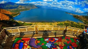 While San Juan la Laguna is popular as a day trip destination, very few tourists base themselves there which makes it particularly quiet in mornings and evenings. And, in general, it has a more authentic feel with indigenous art collectives and Mayan craft shops greatly outnumbering tourist cafés and pubs. Even though it has gotten much busier in recent years, it still has a calmer atmosphere than busy tourist centers like spiritual San Marcos or backpacker central San Pedro. With terrific lake views, steep hills all around and the looming volcanoes towering over it, San Juan is plenty scenic as well.