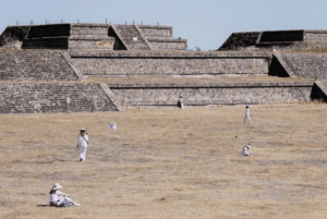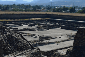 Elements of the Teotihuacan empire included the Teotihuacan Valley with the San Juan River, was altered to cross the Avenue of the Dead. This north-south oriented main reference axis of the city is lined with monumental buildings and complexes, from which the Pyramids of the Sun and the Moon, and the Great Compound with the Temple of Quetzalcoatl (Temple of the Plumed Serpent) majestically rise.